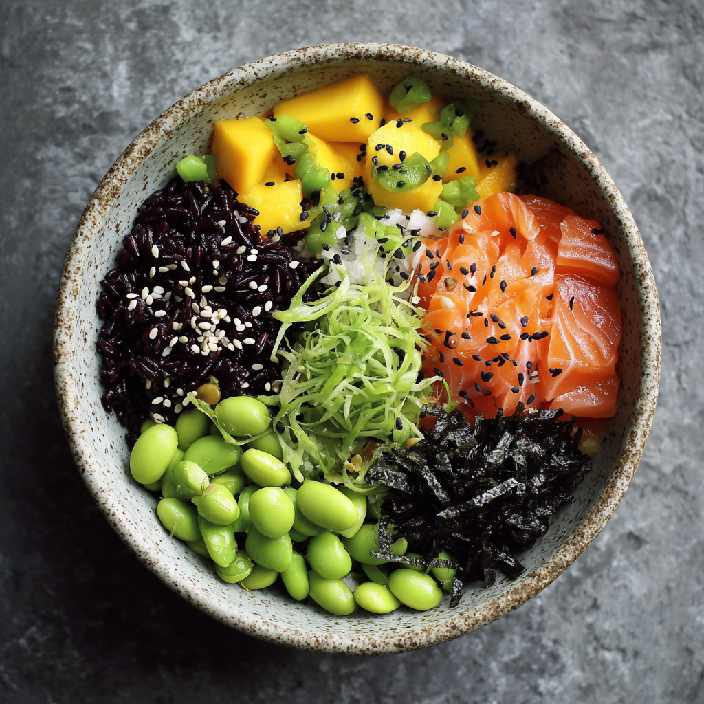 Vous aimez les poke bowls ? Donnez-leur une touche japonaise et nutritive avec une base de riz noir. C’est beau, bon, et franchement original.