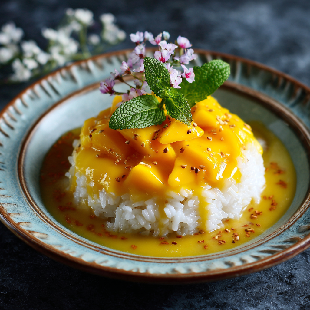 Riz gluant au lait de coco et mangue (mango sticky rice) 🧀 🥭