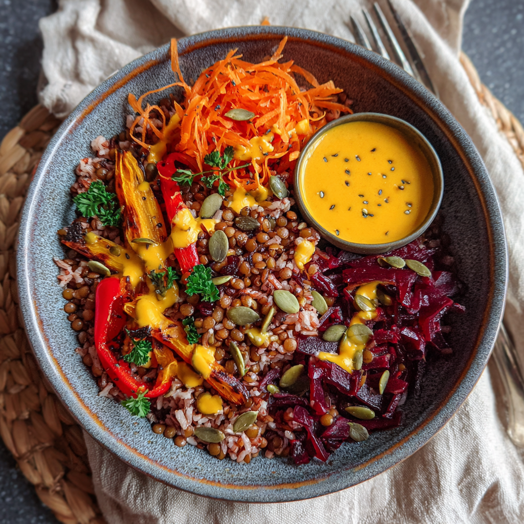 - Riz rouge + lentilles vertes