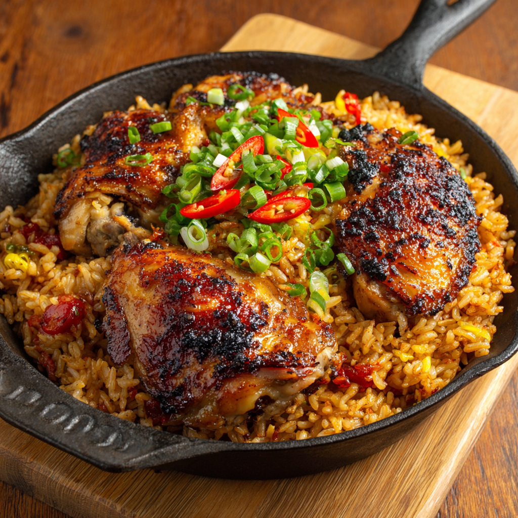 Cette technique libère tous les arômes et enrobe chaque grain d’une saveur profonde et chaleureuse. Pourquoi cet accord fonctionne si bien avec le poulet grillé ? Parce que les notes fumées et piquantes du riz épousent parfaitement la chair caramélisée de la viande, créant une harmonie gustative irrésistible. Chaque bouchée devient une petite explosion de saveurs.