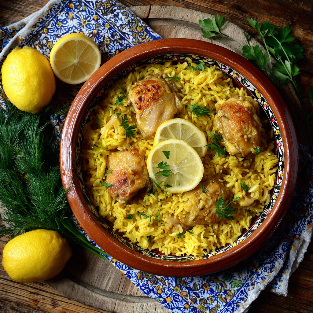 Ce riz citronné s’accorde à merveille avec un poulet vapeur ou poché, dont la chair délicate se marie parfaitement avec cette fraîcheur zestée. Pour sublimer l’ensemble, parsemez quelques brins d’aneth ou de ciboulette ciselée : l’effet est immédiat, léger et terriblement gourmand.