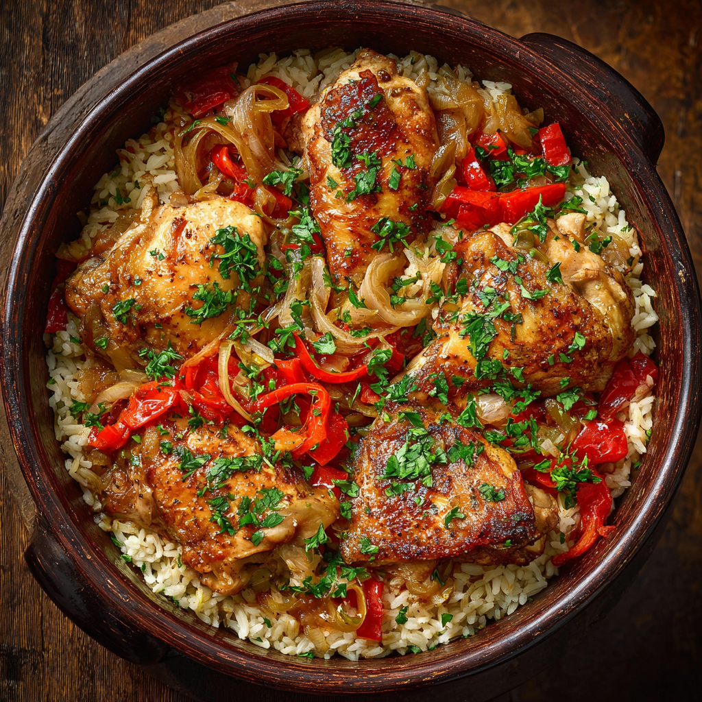 Et si on allait plus loin ? Plutôt que de servir votre riz à côté du poulet, pourquoi ne pas fusionner les deux dans une recette de riz au poulet généreuse et réconfortante ? L’idée est simple mais redoutablement efficace : transformer l’accompagnement en véritable plat complet, où les saveurs se mêlent, où chaque grain s’imprègne des sucs de cuisson, où tout se joue dans une seule marmite.