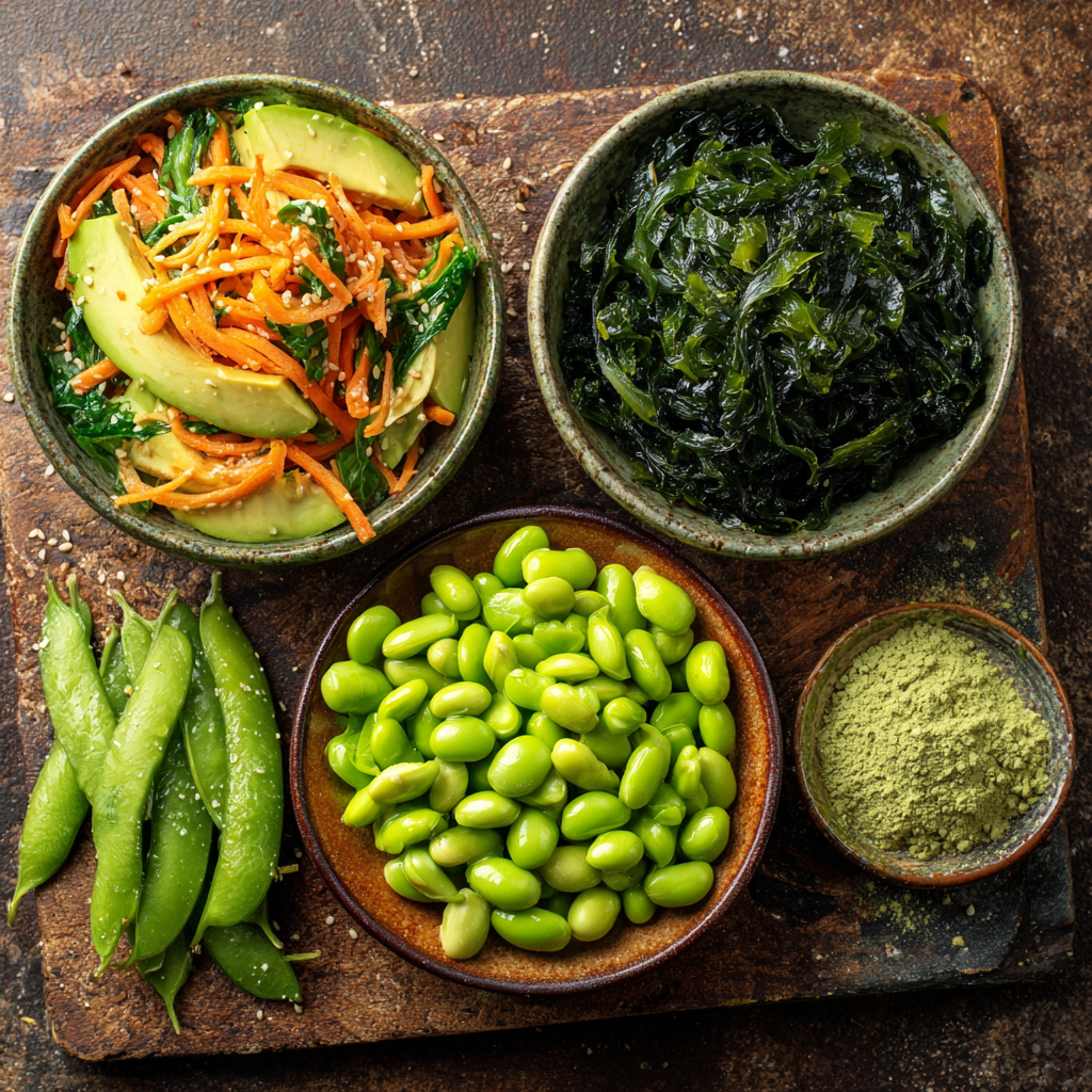 - Les algues (comme le wakame ou le nori en miettes) rappellent les bentos japonais.